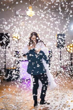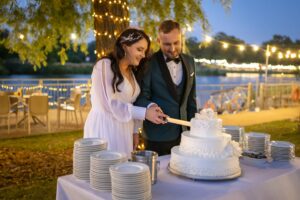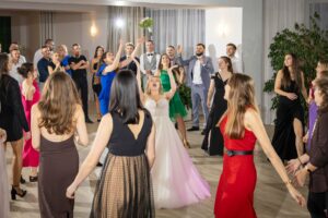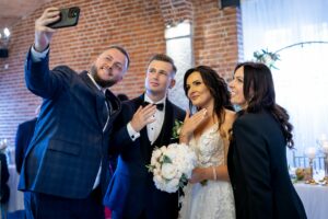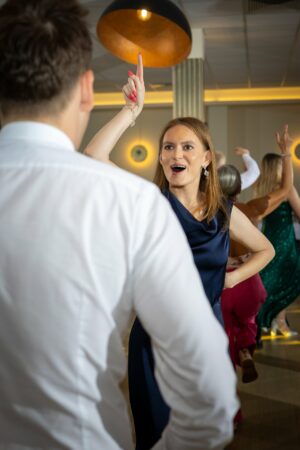 W trakcie przyjęcia rejestruję spontaniczne chwile na parkiecie, radość gości oraz wszystkie ważne punkty programu. Szczególną uwagę poświęcam takim momentom jak na przykład  podziękowania dla rodziców, krojenie tortu weselnego oraz kreatywne zabawy, które nadają weselu wyjątkowy charakter. Pracuję dyskretnie, ale zawsze blisko wydarzeń, dzięki czemu zdjęcia są naturalne, żywe i wiernie oddają atmosferę tego niezapomnianego wieczoru.