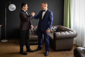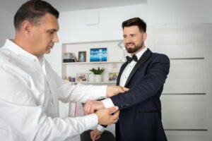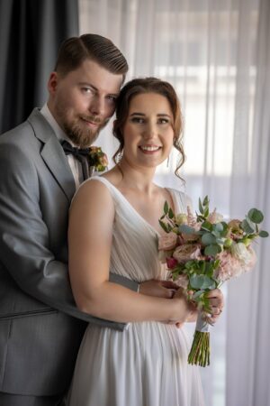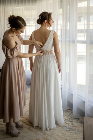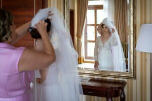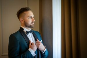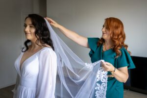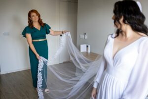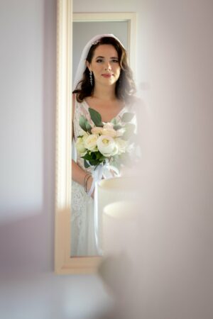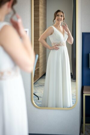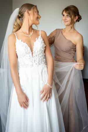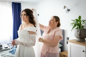 Podczas przygotowań daję Wam przestrzeń, jednocześnie służąc spokojnym wsparciem i podpowiedziami, gdy są potrzebne. Dzięki temu zdjęcia są naturalne, szczere i oddają prawdziwą atmosferę poranka ślubnego — pełną emocji, bliskości i oczekiwania na to, co za chwilę się wydarzy.