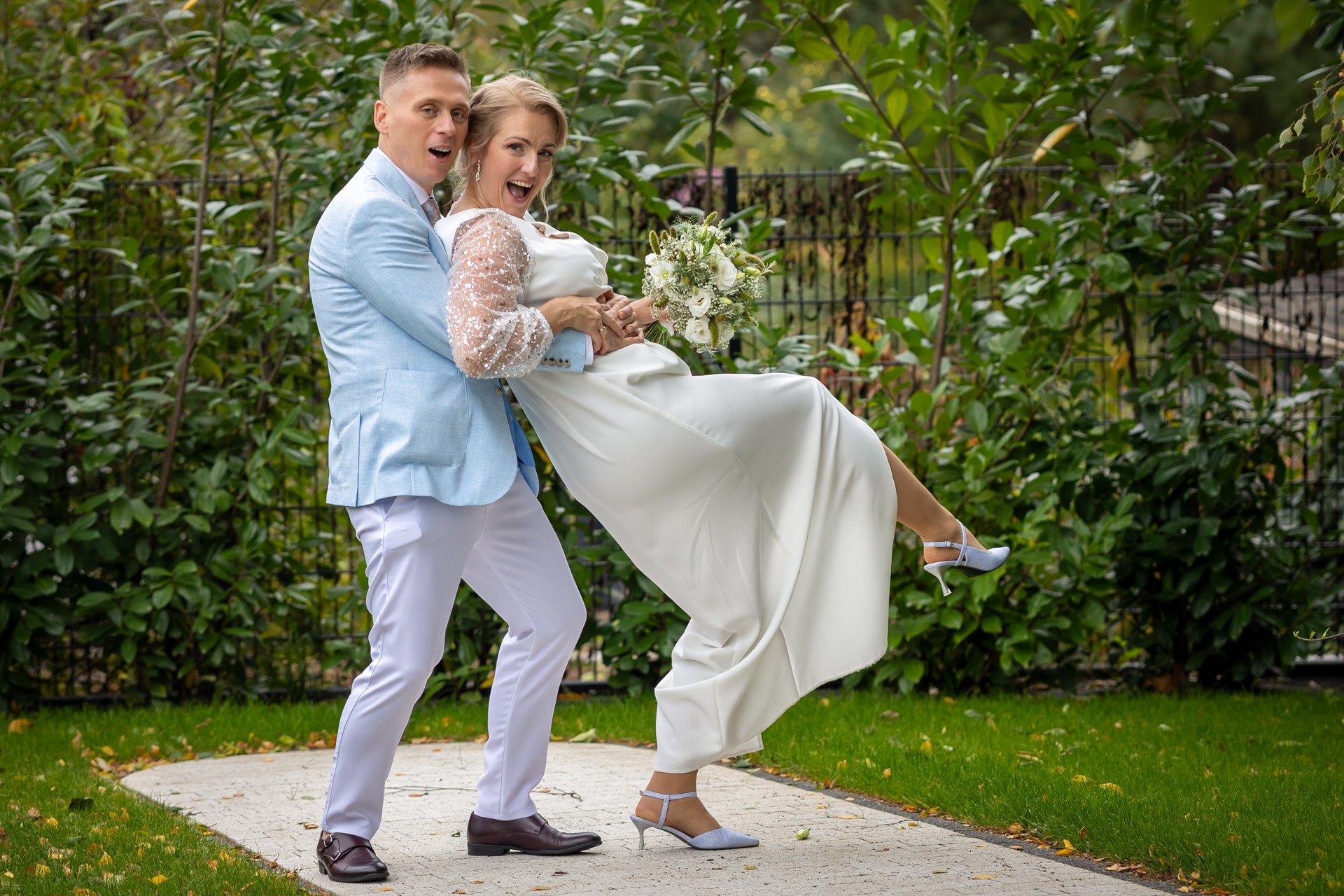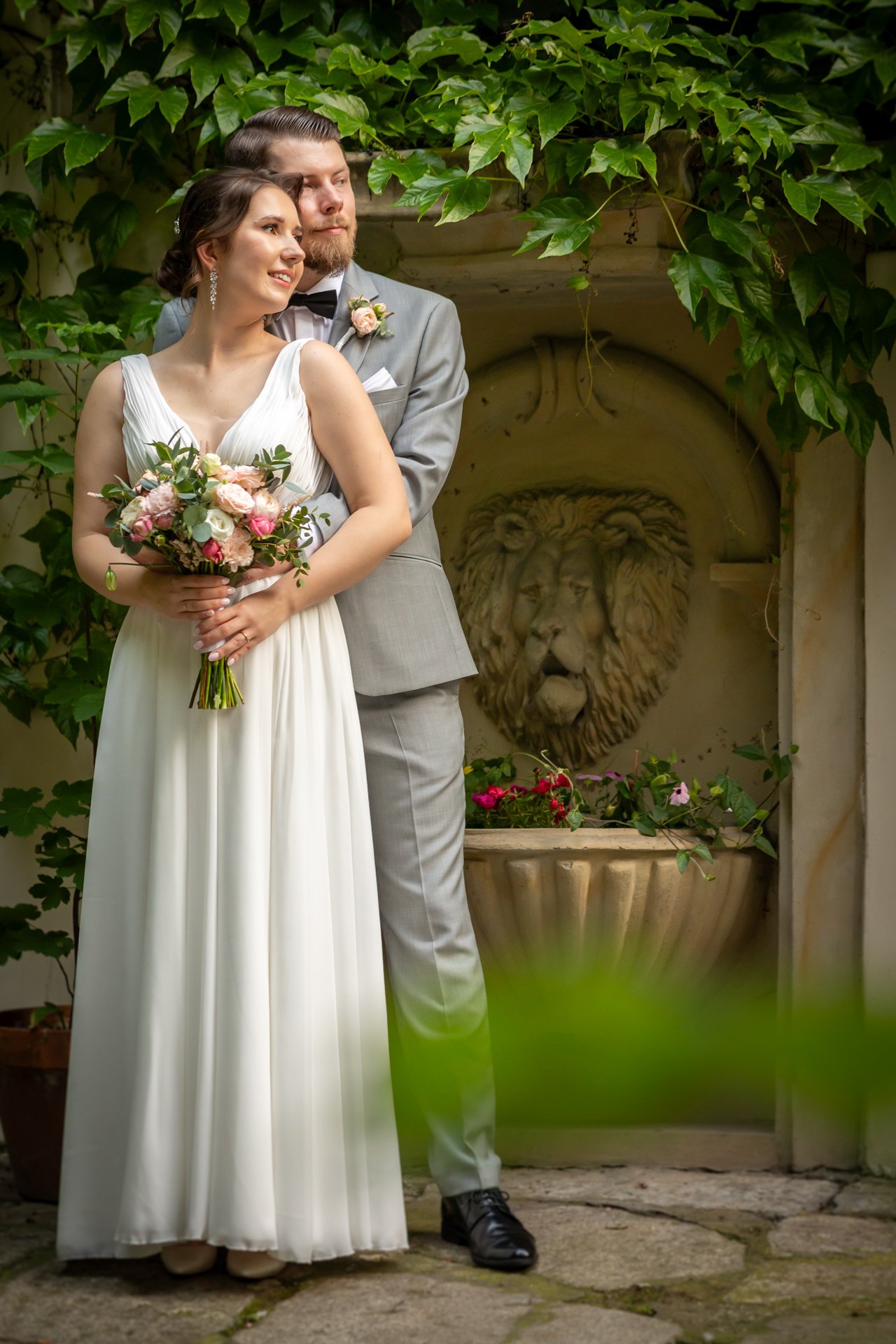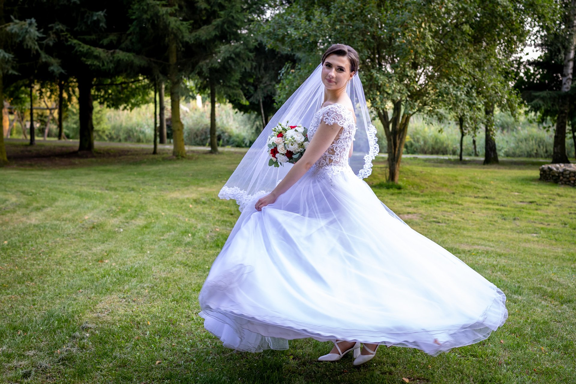 Oczywiście w dniu ślubu również wykonujemy krótką sesję — z przyjemnością zabiorę Was na szybkie zdjęcia w okolicy miejsca, w którym odbywa się wesele.