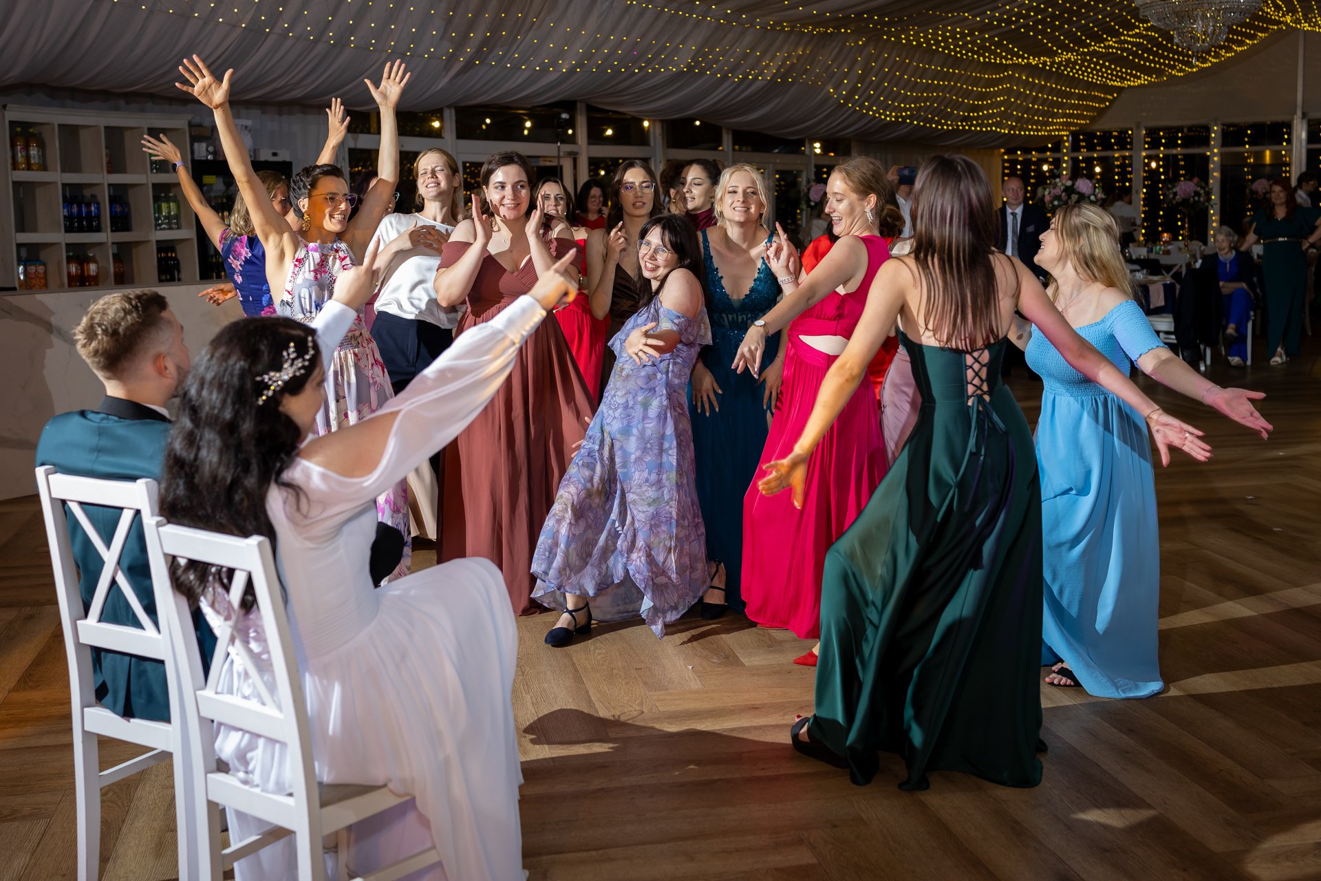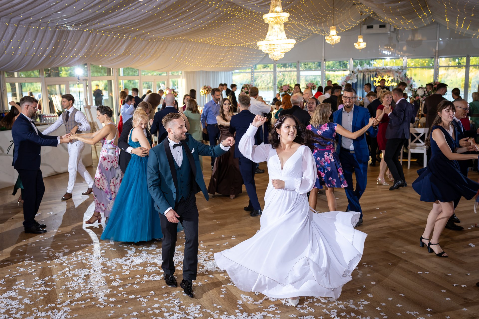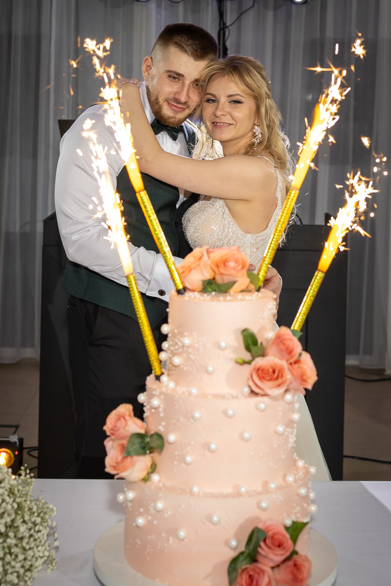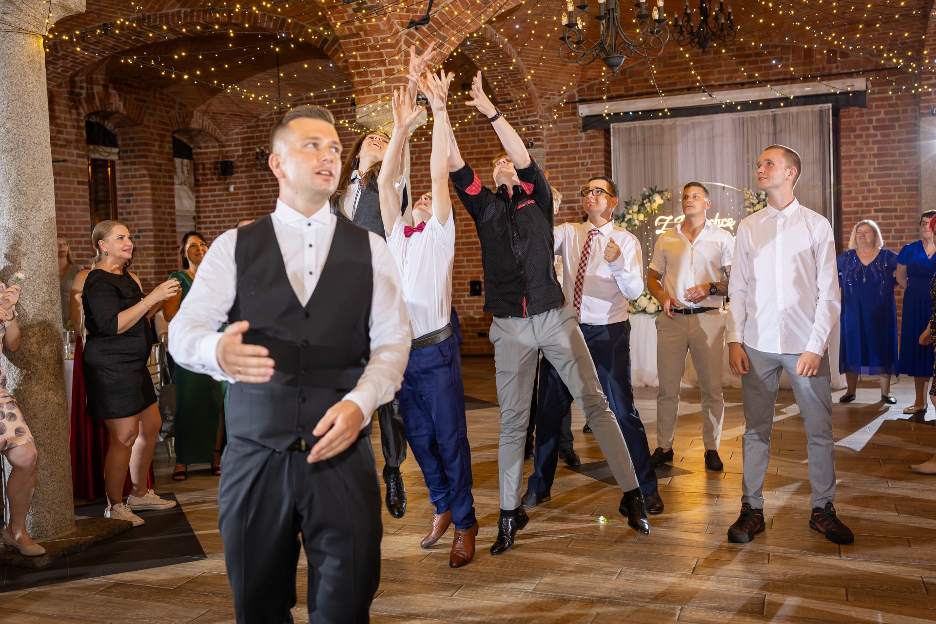 W trakcie przyjęcia rejestruję spontaniczne chwile na parkiecie, radość gości oraz wszystkie ważne punkty programu. Szczególną uwagę poświęcam takim momentom jak na przykład  podziękowania dla rodziców, krojenie tortu weselnego oraz kreatywne zabawy, które nadają weselu wyjątkowy charakter. Pracuję dyskretnie, ale zawsze blisko wydarzeń, dzięki czemu zdjęcia są naturalne, żywe i wiernie oddają atmosferę tego niezapomnianego wieczoru.