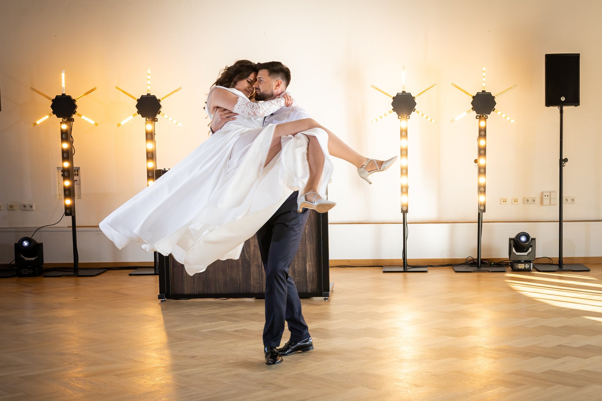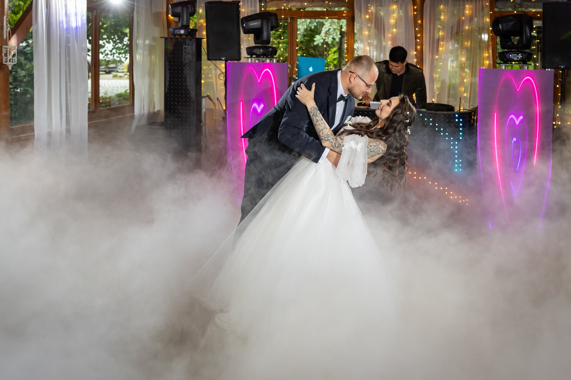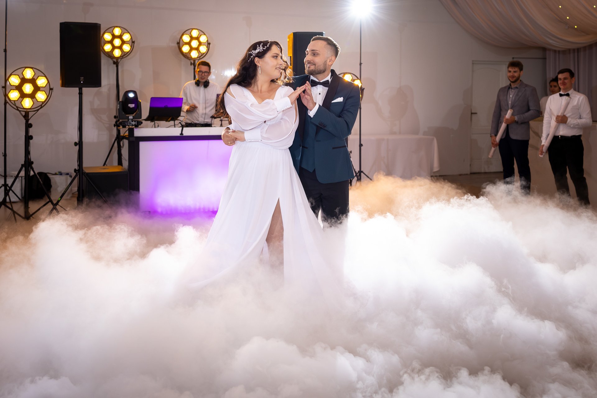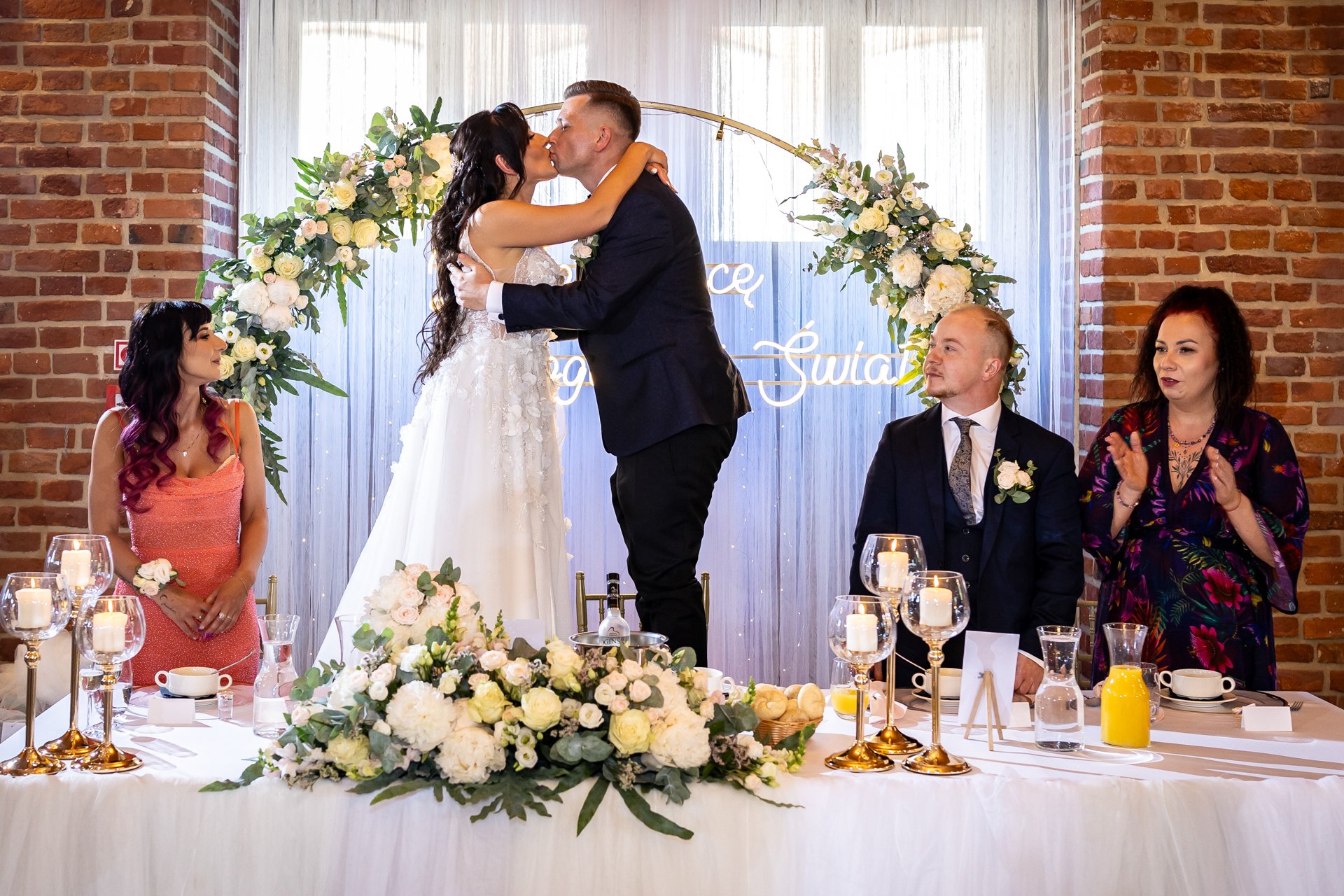 W trakcie przyjęcia rejestruję spontaniczne chwile na parkiecie, radość gości oraz wszystkie ważne punkty programu. Szczególną uwagę poświęcam takim momentom jak na przykład  podziękowania dla rodziców, krojenie tortu weselnego oraz kreatywne zabawy, które nadają weselu wyjątkowy charakter. Pracuję dyskretnie, ale zawsze blisko wydarzeń, dzięki czemu zdjęcia są naturalne, żywe i wiernie oddają atmosferę tego niezapomnianego wieczoru.