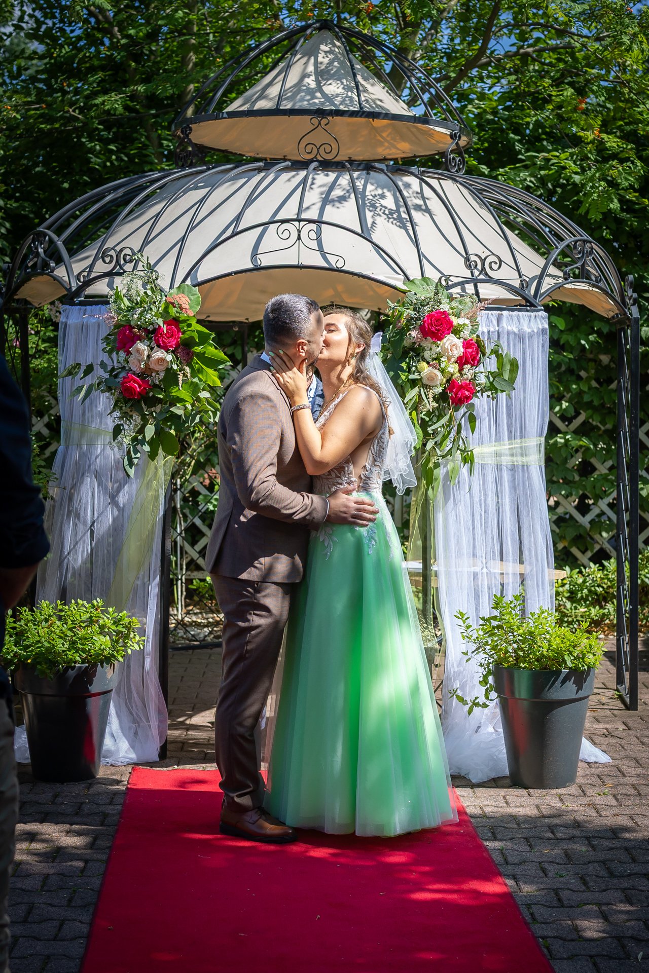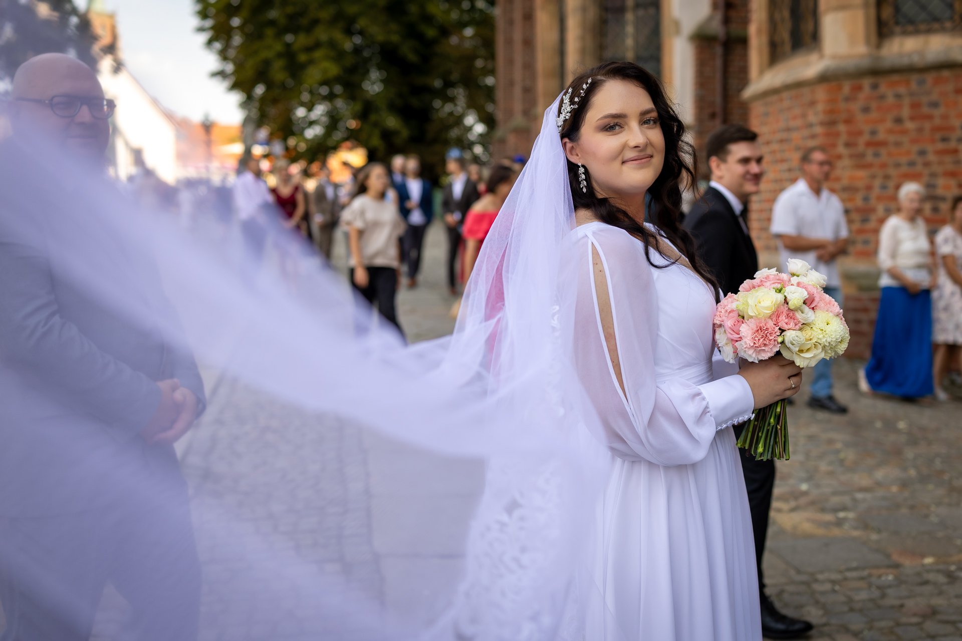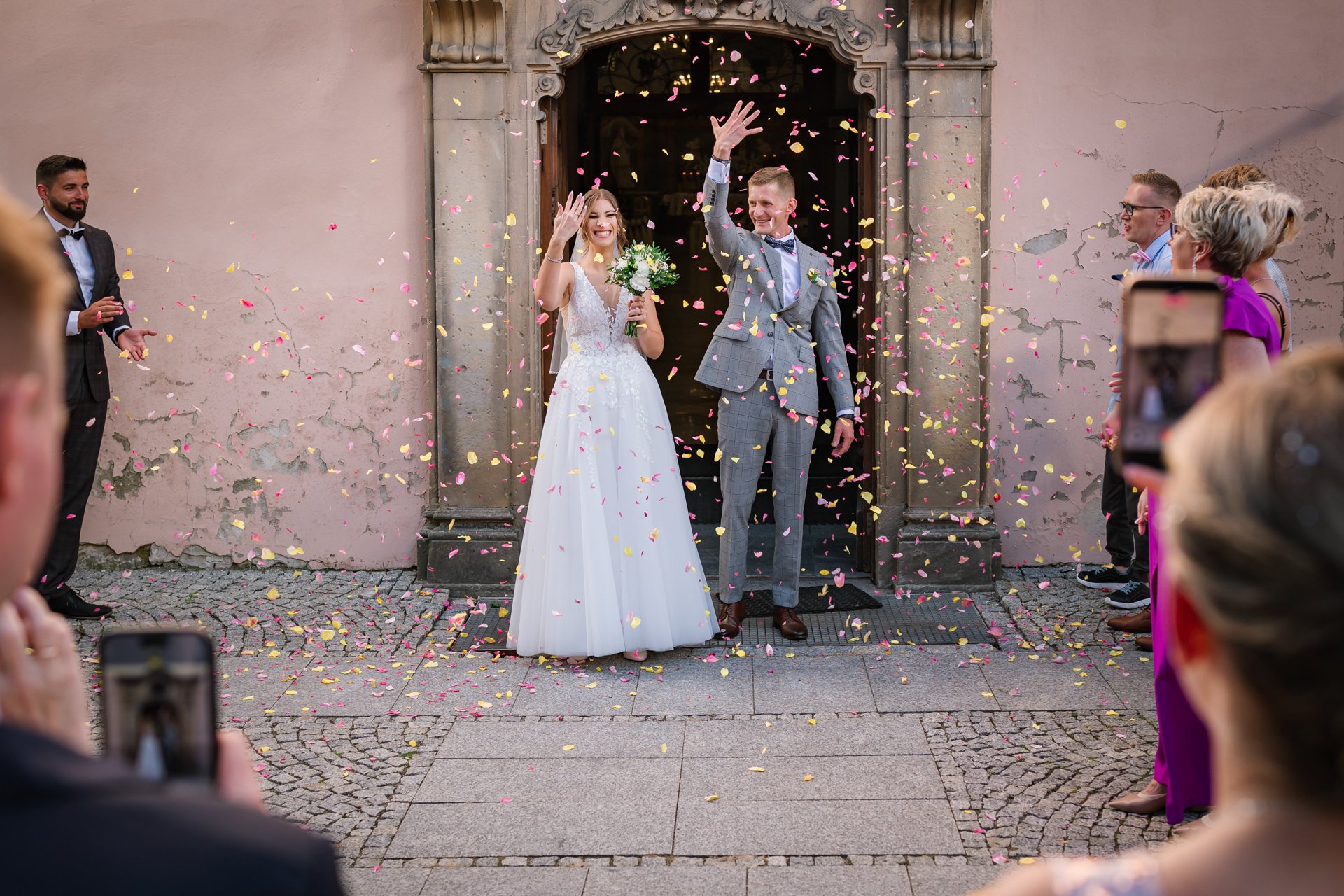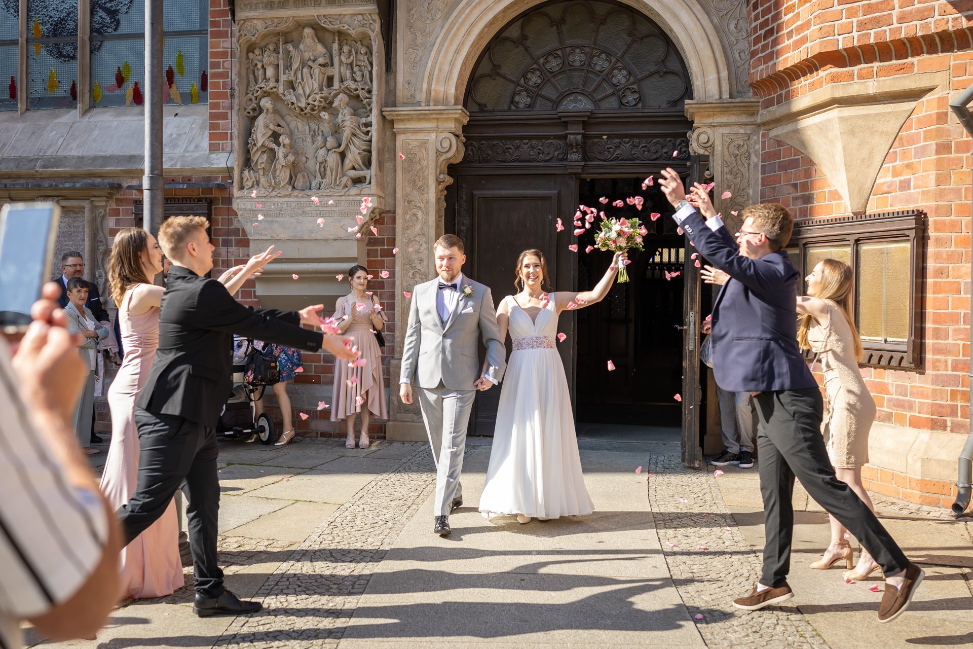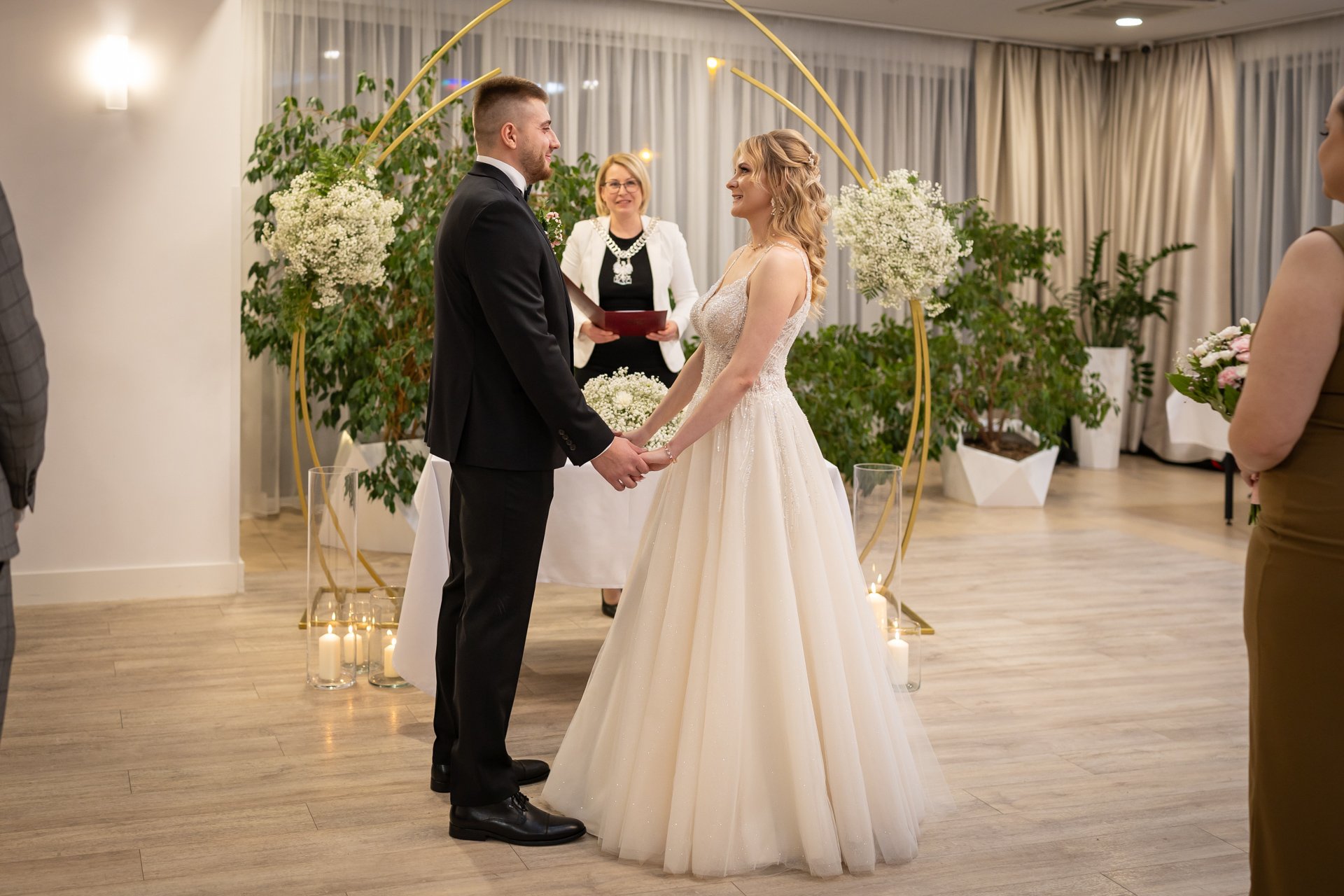 W trakcie uroczystości pracuję w sposób dyskretny i z pełnym poszanowaniem jej charakteru — zarówno w kościele, jak i w urzędzie stanu cywilnego. Skupiam się na kluczowych momentach, takich jak przysięga, wymiana obrączek czy pierwszy pocałunek, a także na emocjach Pary Młodej i bliskich.