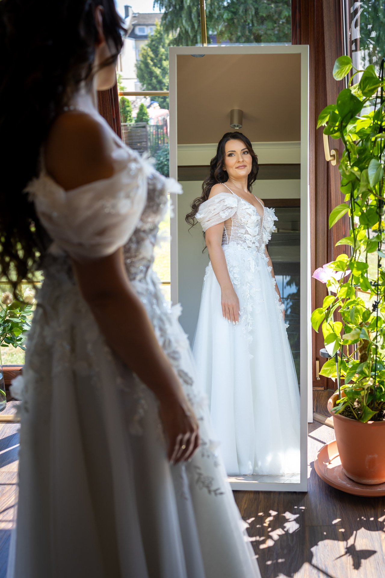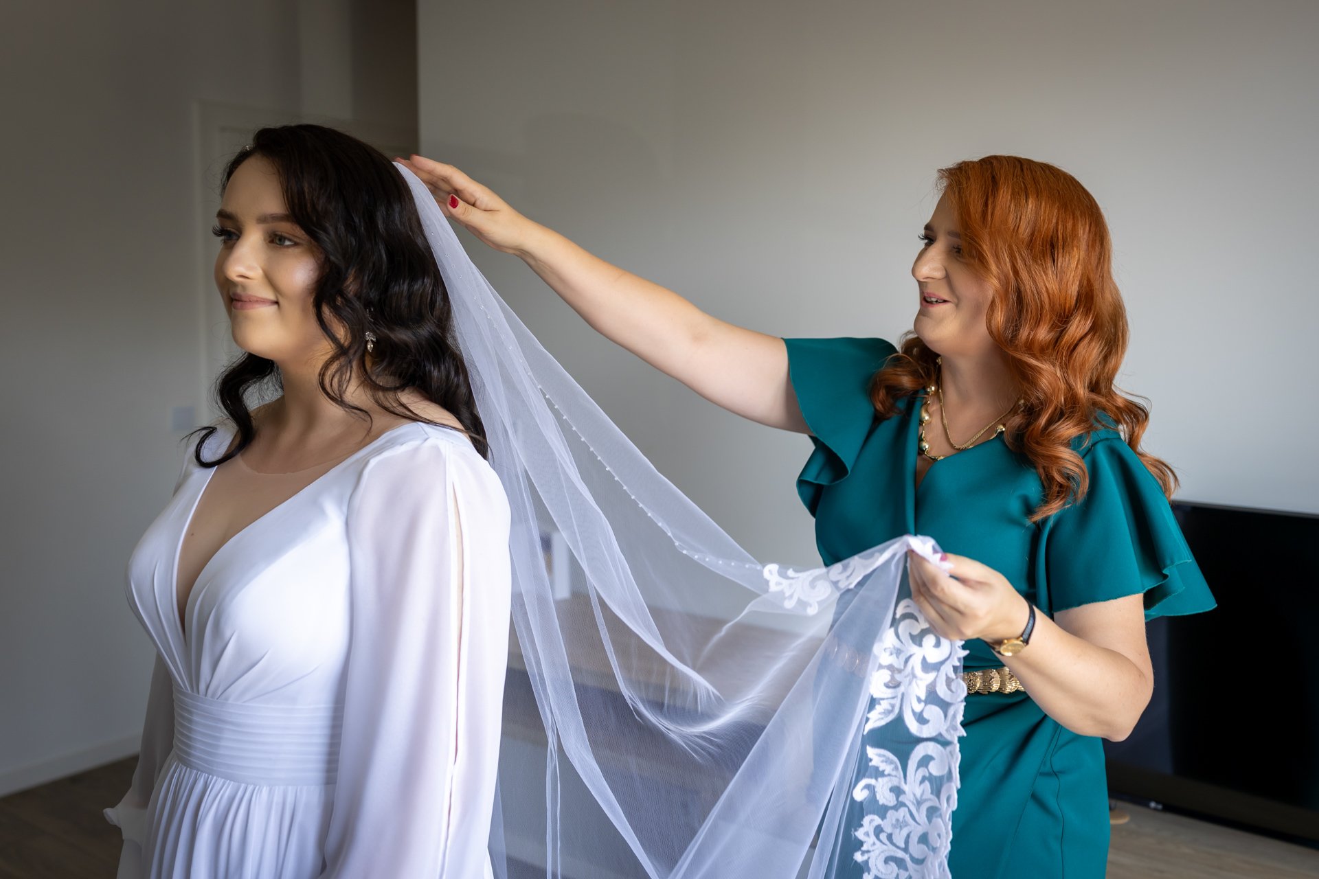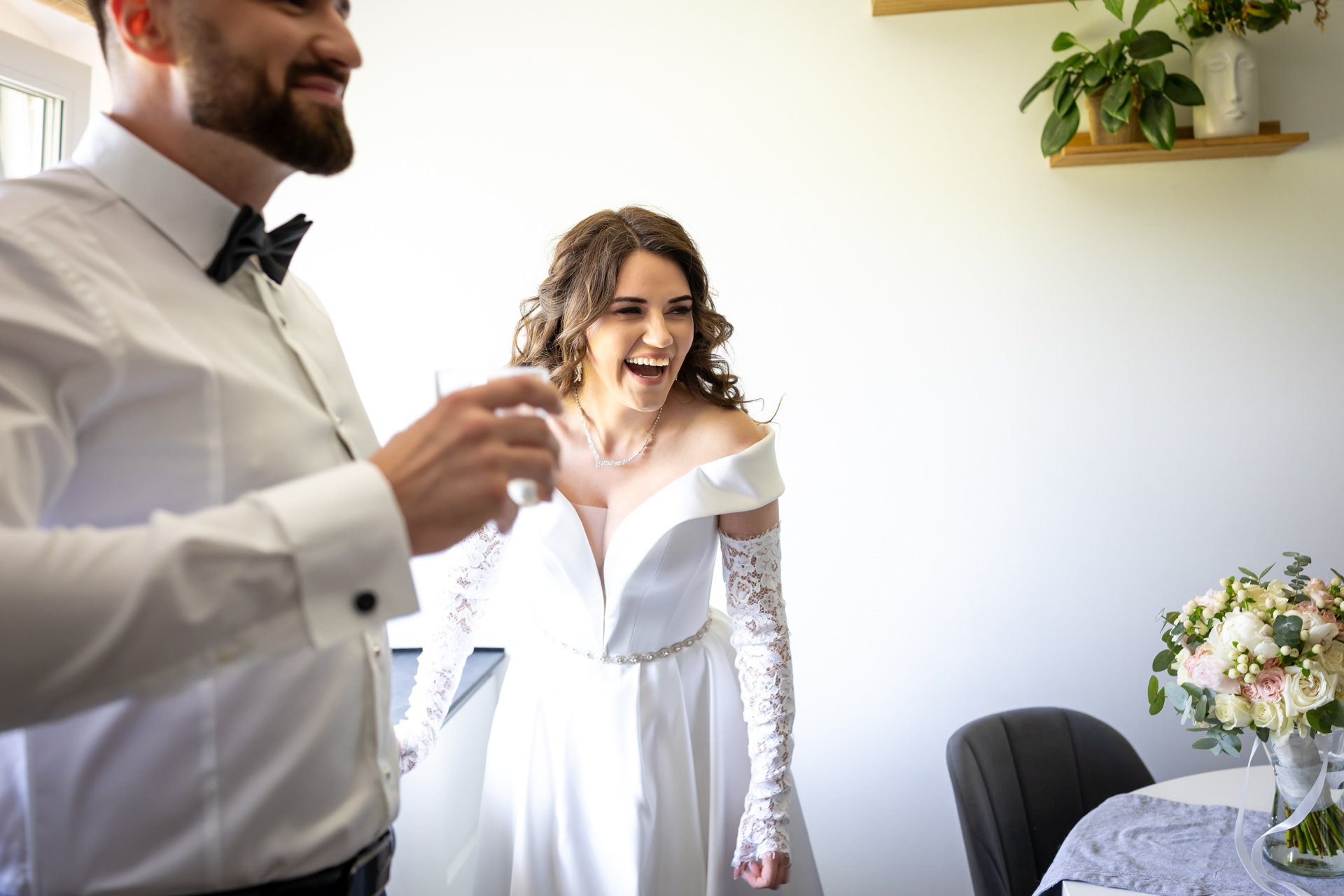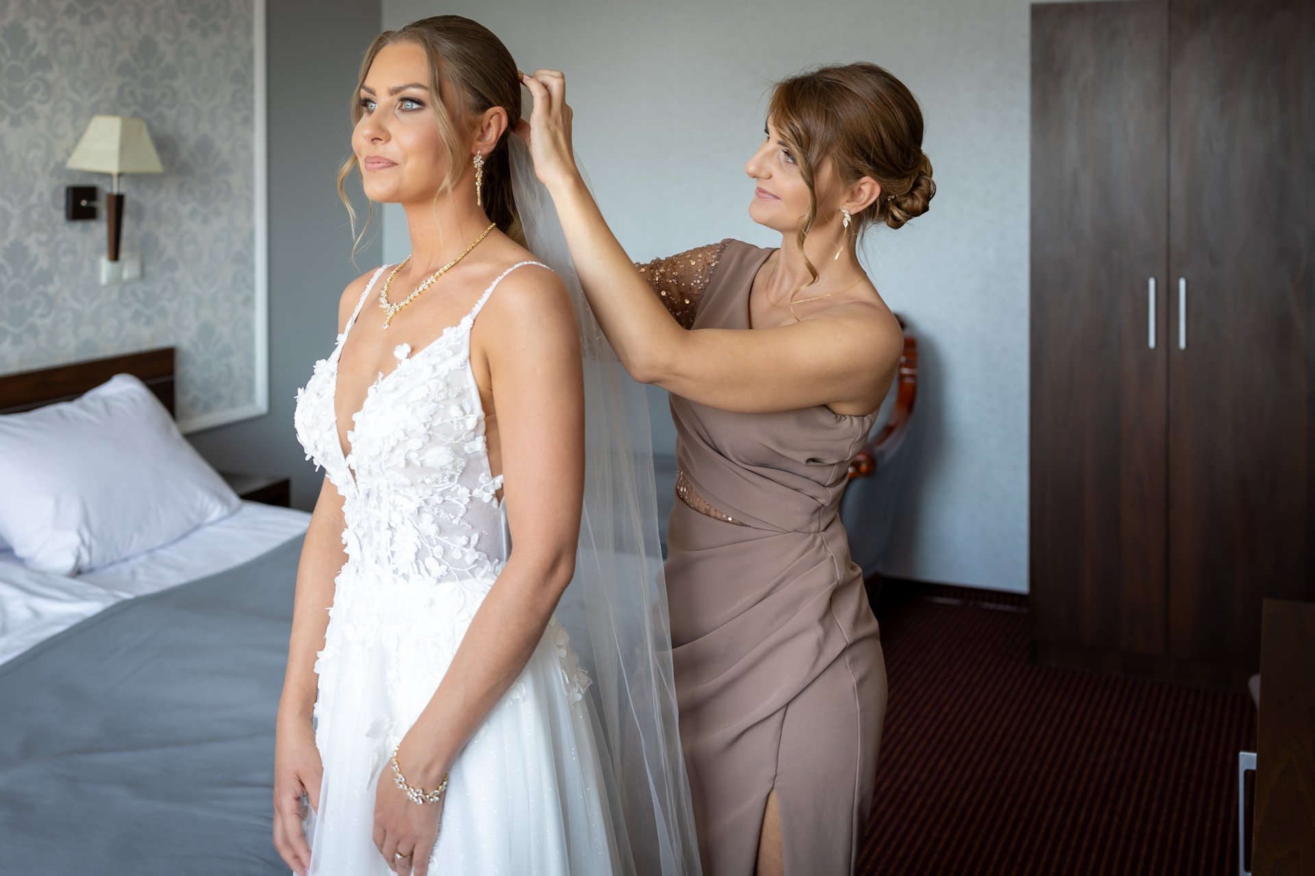 Podczas przygotowań daję Wam przestrzeń, jednocześnie służąc spokojnym wsparciem i podpowiedziami, gdy są potrzebne. Dzięki temu zdjęcia są naturalne, szczere i oddają prawdziwą atmosferę poranka ślubnego — pełną emocji, bliskości i oczekiwania na to, co za chwilę się wydarzy.