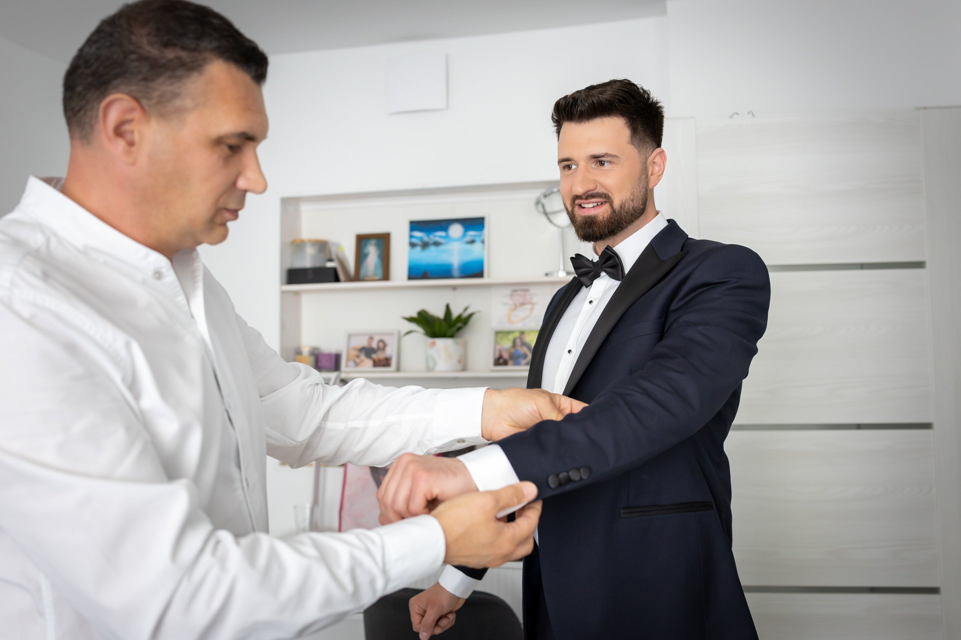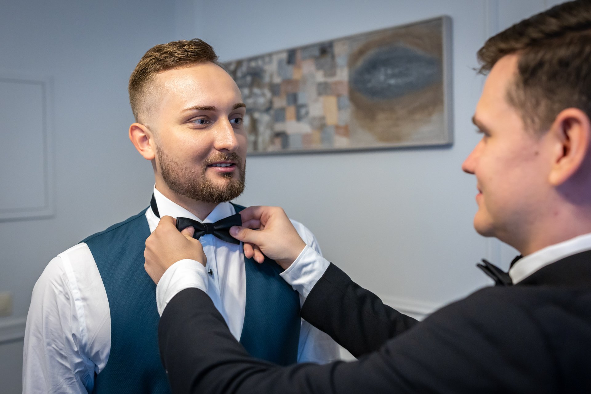 To czas, w którym narasta napięcie, pojawia się radość, wzruszenie i pierwsze uśmiechy tego dnia. Fotografuję przygotowania w sposób dyskretny i nienachalny, koncentrując się na autentycznych sytuacjach oraz drobnych gestach, które często umykają w ferworze wydarzeń.
